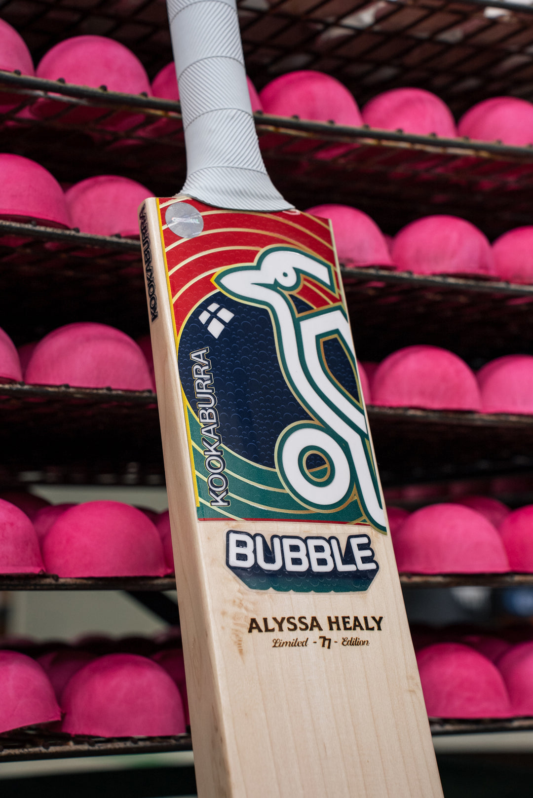 The Kookaburra Alyssa Healy Bubble LE bat is where 'old school' nostalgia meets the explosive power of the modern game. Bringing back the legendary "Bubble" profile, this bat has a high spine and a large, mid sweet spot for those who play with aggressive intent.